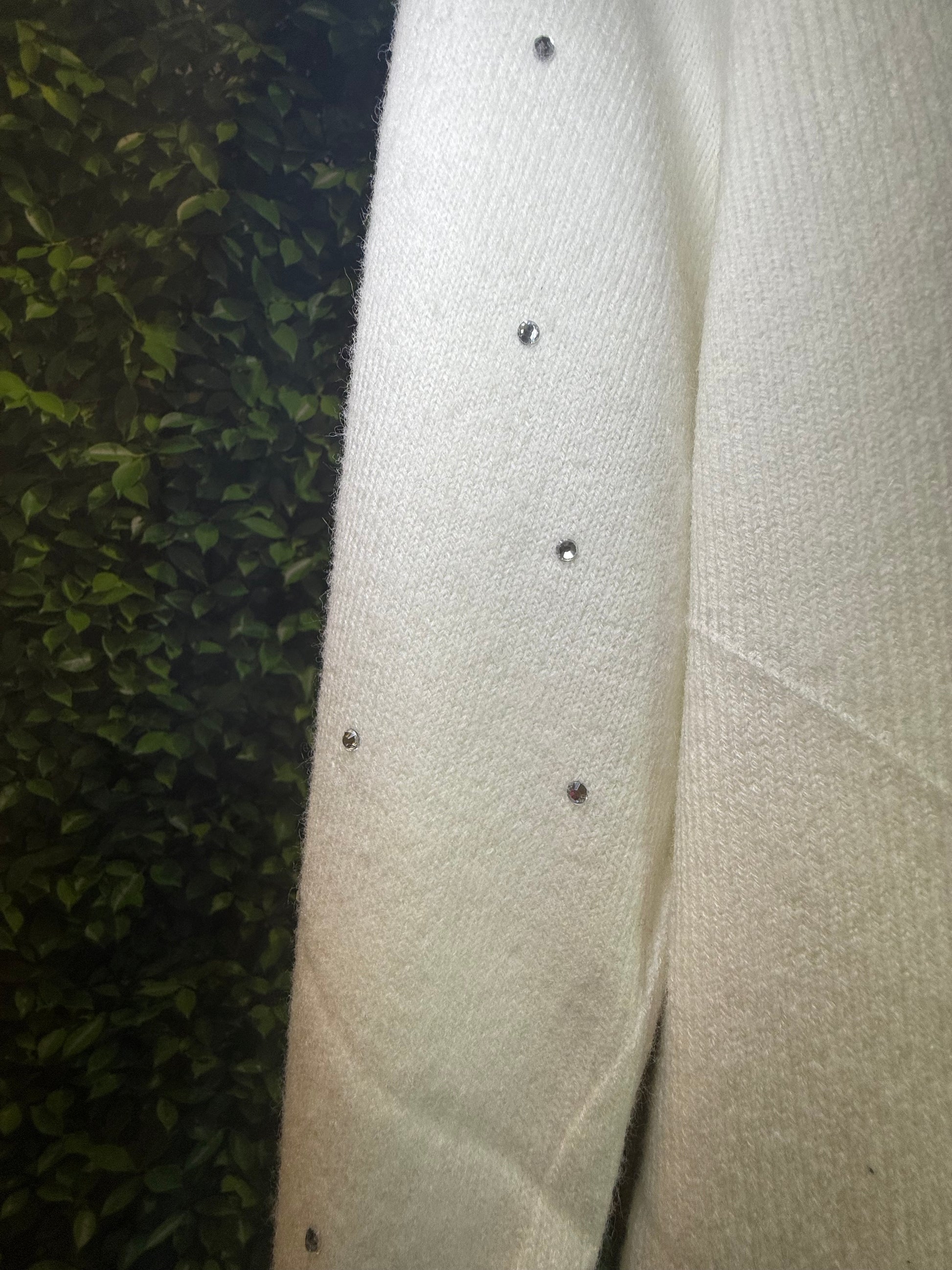 Sleeves: Long sleeves featuring small rhinestone or stud embellishments lined down the arms for a subtle sparkle