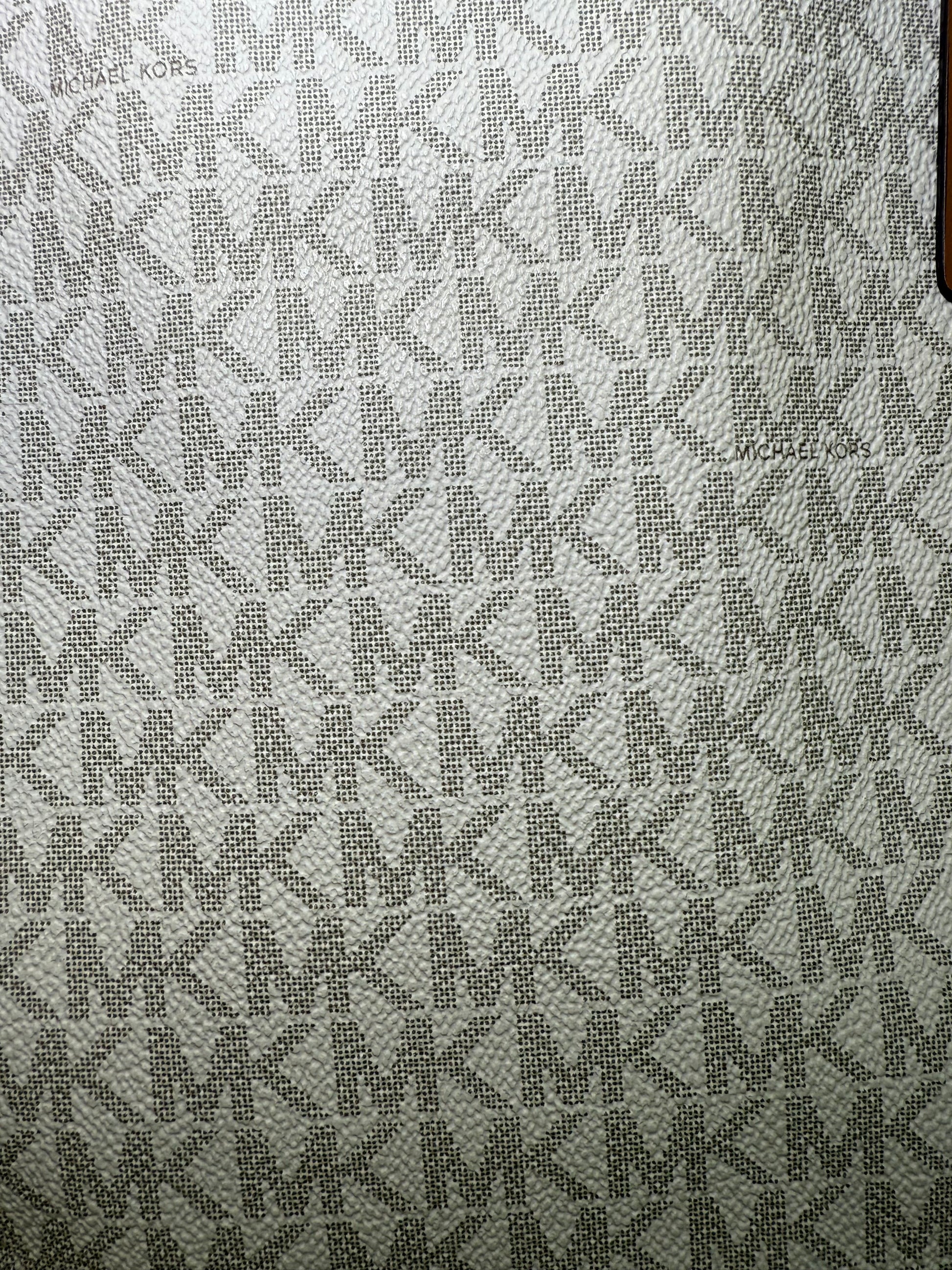 This Michael Kors tote bag is a stylish and practical accessory, perfect for everyday use. The bag features the signature MK monogram print in a light beige and white color scheme, giving it a sophisticated and timeless look. The structured design offers ample space, making it ideal for carrying daily essentials.